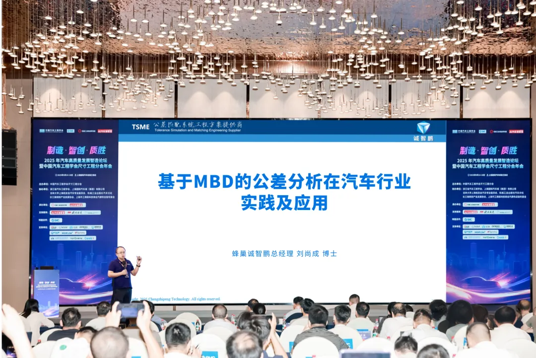 蜂巢誠智鵬總經(jīng)理劉尚成博士在主論壇壓軸登臺,以“基于MBD的公差分析在汽車行業(yè)實(shí)踐及應(yīng)用”為主題帶來重磅演講,將論壇推向又一高潮。劉尚成博士指出,汽車裝配質(zhì)量評價體系正在經(jīng)歷深刻變革,從“經(jīng)驗驅(qū)動”和“現(xiàn)場試裝”轉(zhuǎn)向以感知質(zhì)量為核心的數(shù)字化度量。間隙、面差、手感、光學(xué)一致性等指標(biāo)必須在設(shè)計階段即被鎖定,而非依賴事后調(diào)試。要實(shí)現(xiàn)這一轉(zhuǎn)變,必須以MBD為主線,將公差設(shè)計前置,并貫通研發(fā)、制造、檢測與質(zhì)量管理的全流程,確保設(shè)計意圖精準(zhǔn)落地、可追溯和可驗證。